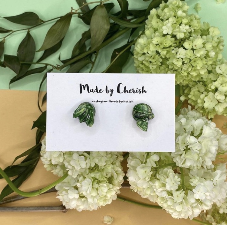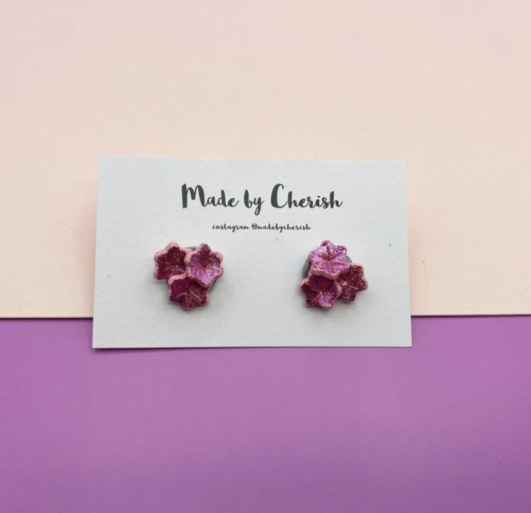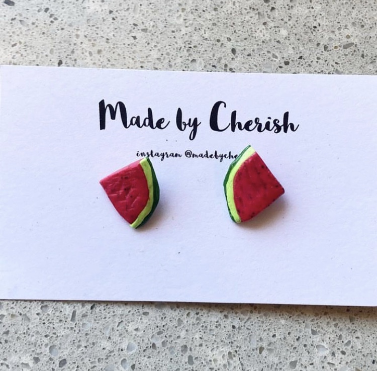 I was inspired to look at the shape of leaves and the colours in the early spring. So, I made some studs and had a go at making the little shapes. Initially they were going to be flat, but through playing with the components I made them a little more textured. Here I was playing with translucent powders and impressions. The bottom components have a base that is different polymer clay shades mixed together, then I dusted them with a white translucent powder. Little flower studs are a personal favourite of mine. They are small enough that you can wear them for work or play and unique enough to be a point of interest. These little lovelies are stacked, glittered and glazed. Completely inspired by the colour of sunflowers. I made them after visiting a sunflower farm just outside of Ballarat. The slab these came out of took me forever to make! I have a couple of other pairs out of the same slab, but different shapes. I rarely make the same pair twice. This is a good example of taking one slab and making them into different types of pairs. The colours you see are raised on-top of the black background so they have a unique point of difference because they are raised. I quite like the studs, I think they could make a corporate look a little more playful. The flowers have a wintery feel to them. The photo doesn’t do these justice. I sent them to a friend and they never arrived so I hope where ever they are they are happy! I love the flower shape so this was me having a play. I cut out the hole in the middle by accident, I intended to make a ring impression, but these turned out perfect! My first attempt at making pairs that were like charms. Inspired by my amazing friend who rocks fruit themed attire. I had to draw it the concept first then make it. Very small, very delicate, but I love them!